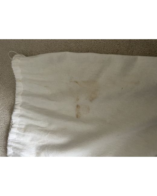 It has been in the dust bag all its life. The gold hardware on all four corners at the bottom of the bag itself has afew scuffs and this is only due to flannels displaying the bag. Any kind of defect ok the bag had been caused by flannels displaying the item.