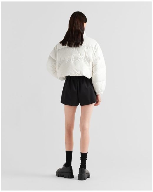 The limited edition jacket is made with Re-nylon outer shell material and Goose Down Padding lining material for added warmth. The cropped design, zip closure, and modern style make it perfect for travel, casual outings, and workwear.
