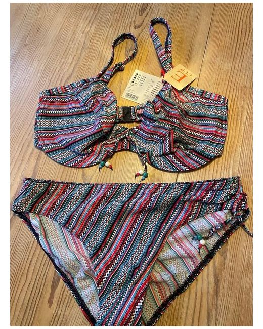 Embrace the sunshine with this vibrant Esprit bikini set, perfect for those who prefer a touch of colour in their swimwear collection. The set includes a size 14 bikini top styled for a perfect fit and a pair of matching swim briefs, both in a playful multicoloured pattern that's sure to stand out at the beach or pool. Designed with comfort and flair, this bikini top features a supportive style for cup size E, ensuring a secure and flattering fit. The regular size type and strap design provide a seamless look under any swimwear. Whether you're lounging or enjoying water activities, this bikini set is a delightful addition to your wardrobe.