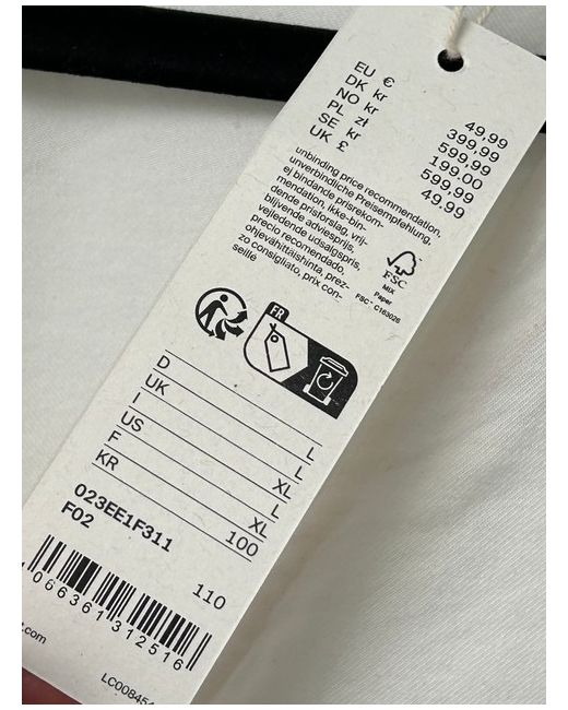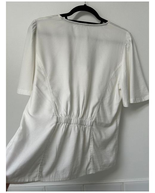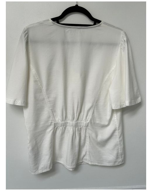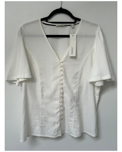 Size - L UK12. This is a really lovely blouse - I would say its off white not pure white. it has a v neck with lovely buttoned front and a very wide fluted sleeve which is beautiful. Material: 50% Cotton 50% Viscose.