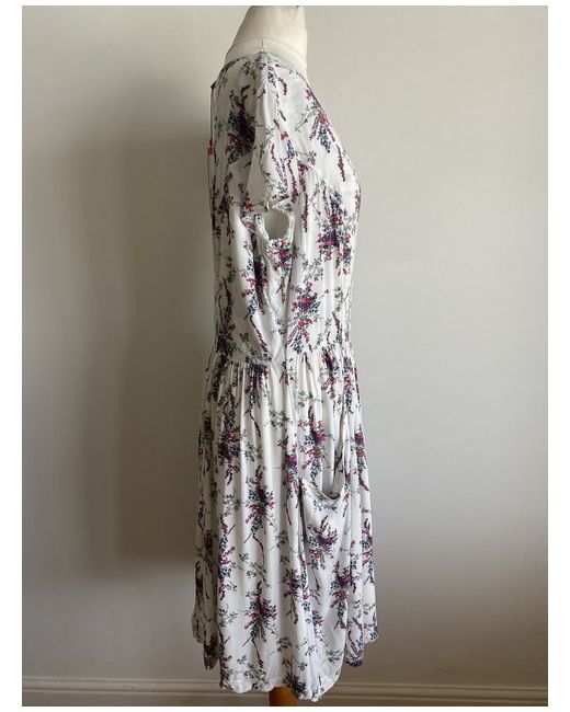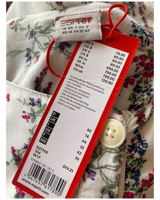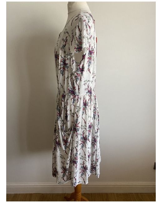 Esprit Dress size 14 white Multicolour Floral pattern button down summer pockets. Pit to pit 21” Length 39” Sleeve length 5.5”