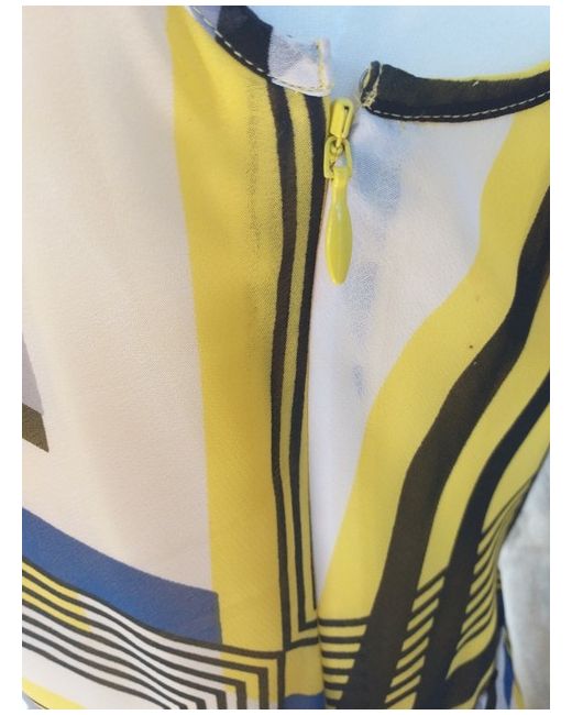 yellow multi sheer lined UK 8 panel summer party dress NWOT