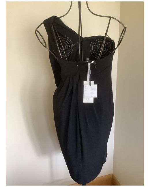 Internal rubberised strip around top of dress to enable it to grip to the body. Polyester and spandex which gives the dress great flexibility. Wrap style, with fabric from over arm draping into the dress.
