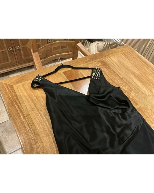 Never worn Planet glamorous fully lined black party dress in size 16. This vintage sleeveless dress features a combination of silk and matt fabric, with a zip closure. The long ballgown style dress has a diamante design on the shoulders, making it perfect for party or cocktail occasions.