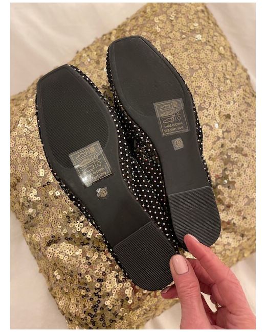 Lovely little lightweight sparkly party slip-ons that you could tuck into a bag to change into. a slim fit. Cinderella shoes.