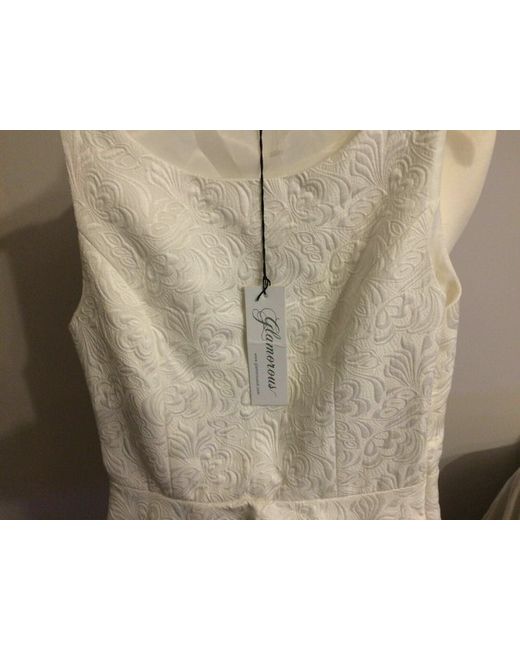 Women's White Patterned Short Sleeveless Evening Party Dress UK 8