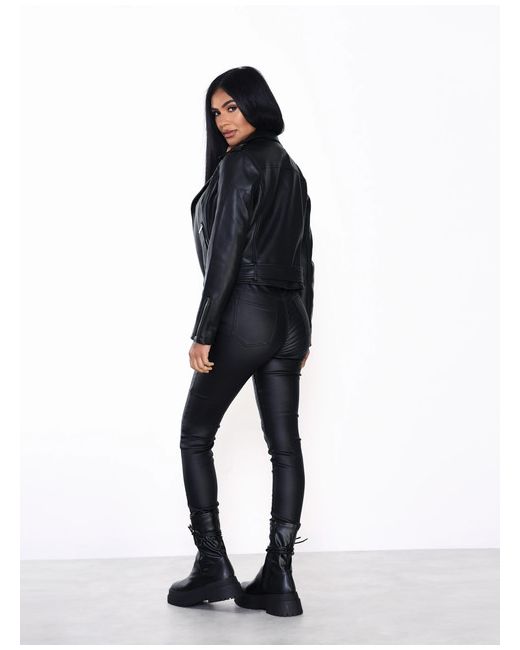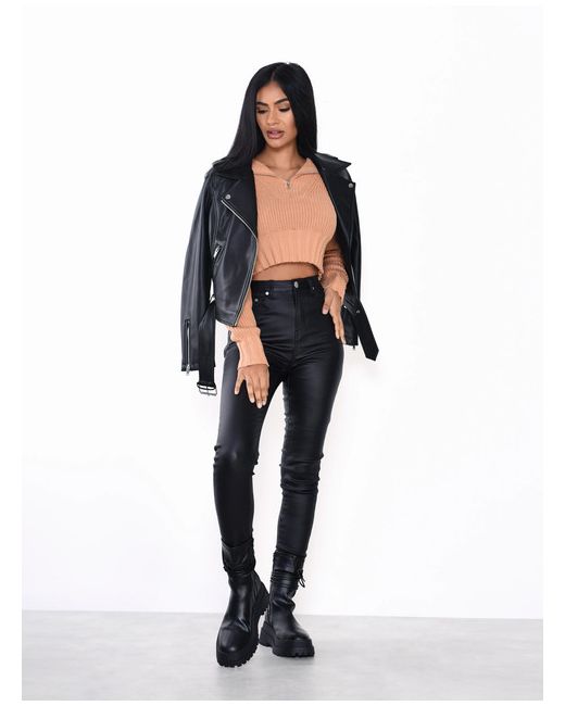 Add one of this season's biggest trends to your wardrobe with this black PU biker jacket. Super on-trend, this jacket features a belted detail, this will be your go-to for every occasion. Style with jeans or a dress and boots to complete the perfect look for this season!