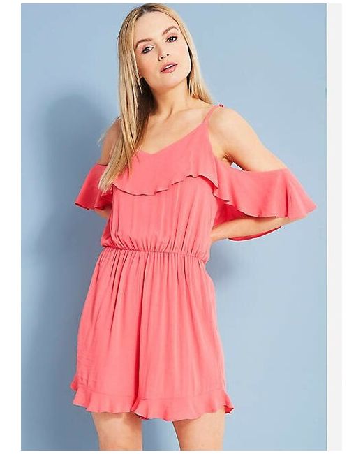 Cold shoulder playsuit with elasticated waistband and tie back detail.