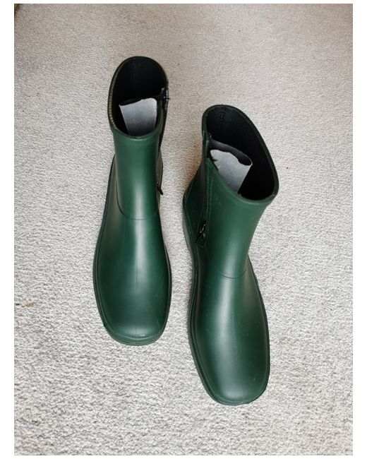 A quality Wellington style rubber ankle boot with an Insulated insole and a side zip with a rubberised gusset to make them easy to put on and take off. No marks of any kind.