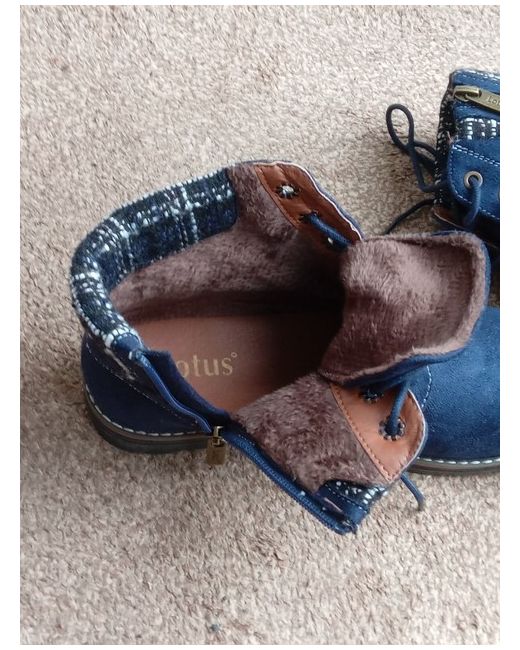 This is a pair of new Lotus Drew women's ankle boots in a UK size 4. The boots are a casual style bootie with a flat heel height of 0-2cm. They are made from blue textile material, perfect for everyday wear. These ankle boots are a stylish and comfortable addition to any woman's wardrobe.