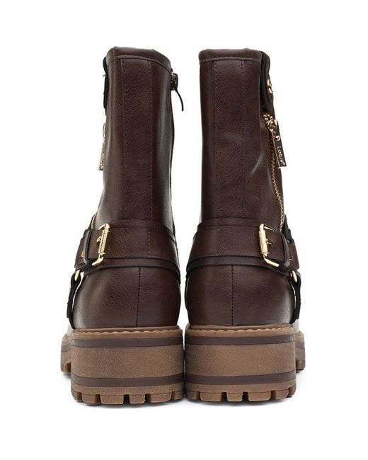 Embrace your inner biker chic with the Lotus Hyde boots. These mid-calf brown boots feature a rebellious buckle and zip design. Crafted with a leather-look upper and robust rubber sole, they promise durability and style. The fleece lining ensures warmth, while the inside zip offers convenience. With a 4cm heel and cleated sole, they provide the perfect elevation and grip.