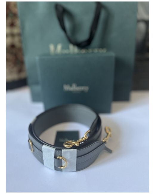 Mulberry Personalisation Bag Strap in charcoal colour with gold brass hardware. RRP: £260 these are now soldout. Small Classic Grain. leather bag strap with D-rings for charm keyrings. Add personality to your bag with this strap, equipped with three D-rings for attaching charms.
