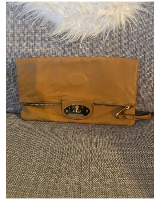 This Mulberry clutch bag features the iconic Postman's Lock design, making it a stylish accessory for women.