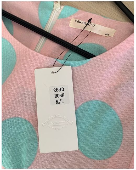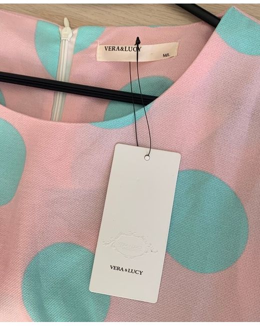 A beautiful pink and blue polka dot pattern tunic dress that has never been used and still has a tag. The dress is size M/L and is in excellent condition. It is a little discoloured due to storage and needs to be cleaned. The dress is 95% polyester and 5% elastane.