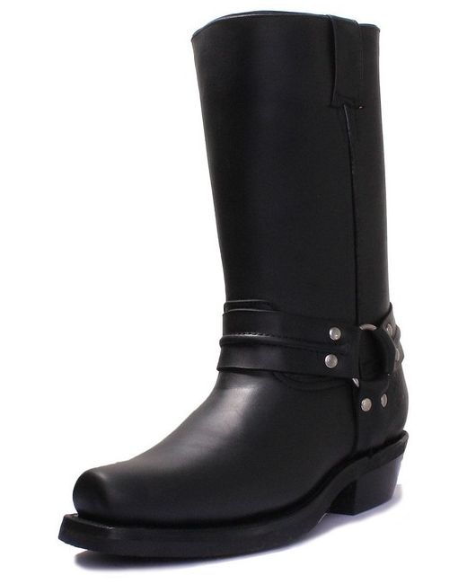 Upper is made in abrasion resistant leather. Squared toe-shape and a big harness buckle on side gives these boots a very classy look. 100% SECURE CHECKOUT. Custom Block Heading. Custom Block Content.