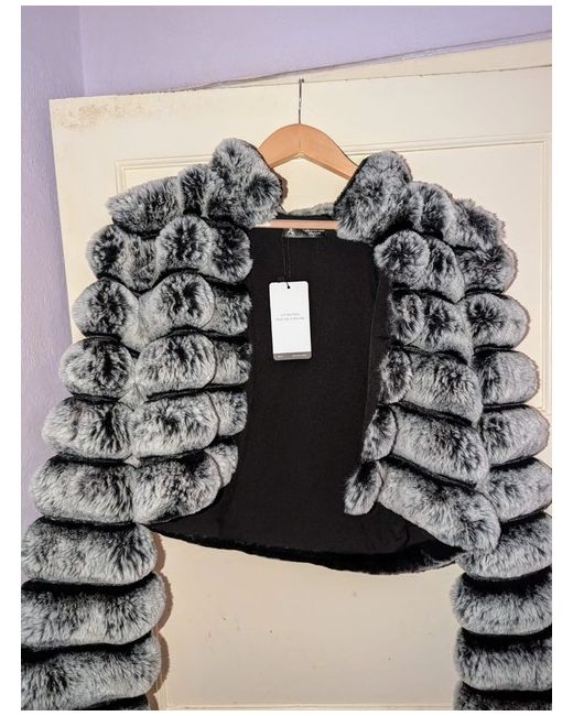 Add a touch of elegance to your wardrobe with this stunning black and grey fur jacket. The jacket features a faux fur outer shell and lining, with a satin fabric type and fur trim accents. It has a slim fit and a short length, making it perfect for any occasion, whether it's a party, cocktail event, or formal occasion. The jacket is designed with a hook and eye closure and 3/4 sleeves, making it lightweight and suitable for all seasons. It's collarless and comes in a size M, with a grey colour and a classic outdoor theme. You can personalise this jacket, making it a unique addition to your wardrobe.