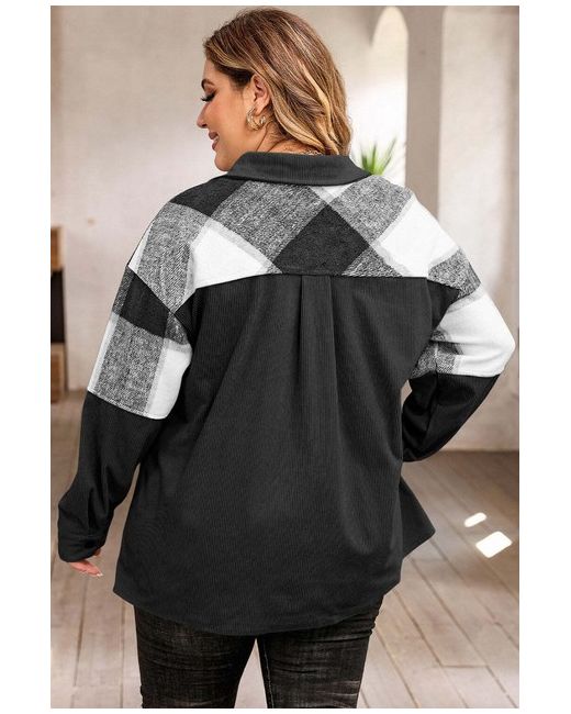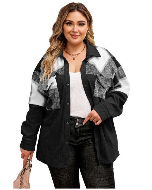 Sherpa Lined Plaid Shacket Black Small Fits M