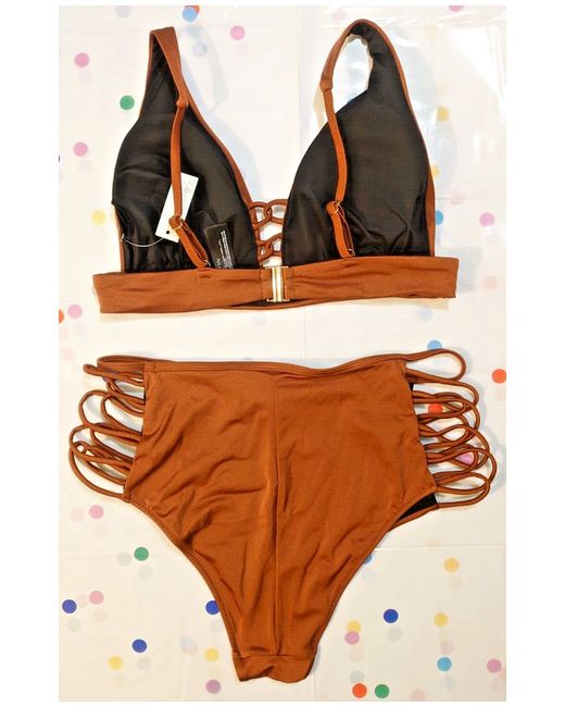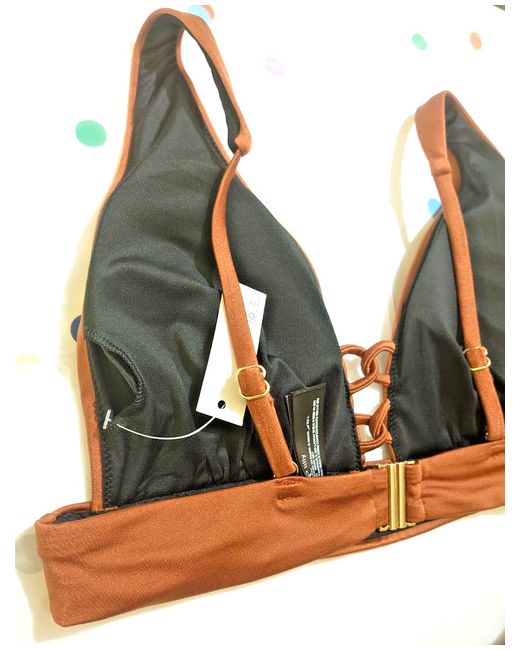 BNWT Iris Lily Metallic Brown Loop Bikini Set w Removable Pads L Uk 14