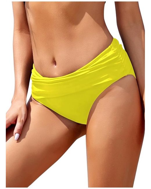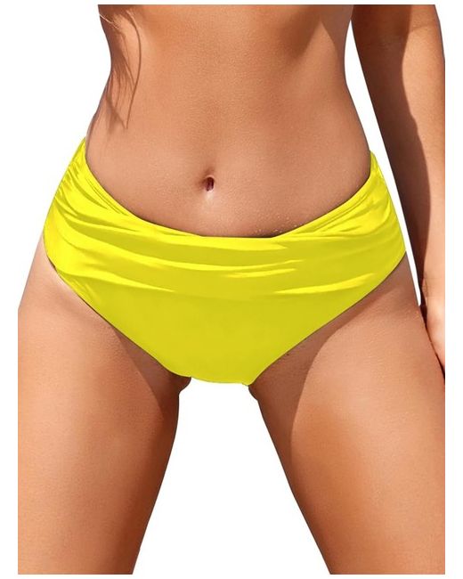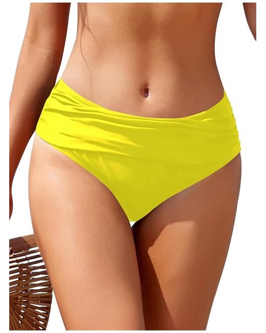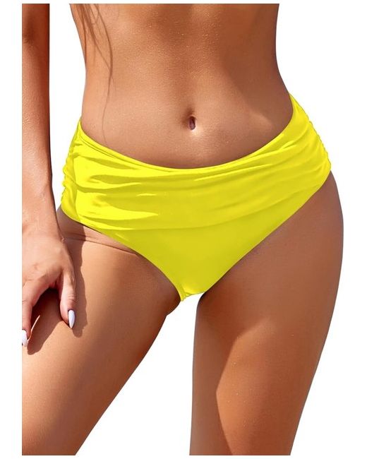 Women's Ruched Bikini Bottom Solid Medium Waisted Tummy Control M