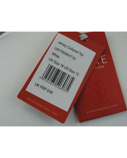 Pure Collection Danielle Collared Jersey Top White. Add this beautiful Pure Collection Danielle Collared Jersey Top to your wardrobe this season. Cut for a flattering silhouette, the style boasts a feminine v-neckline with a neat collar.