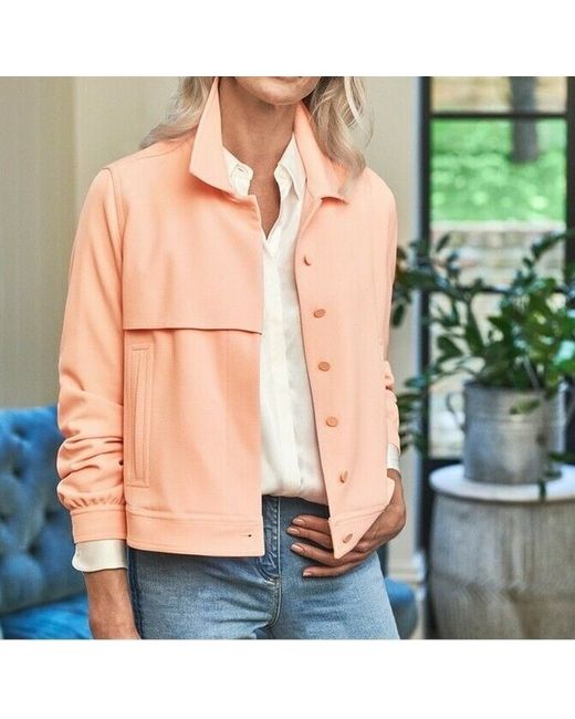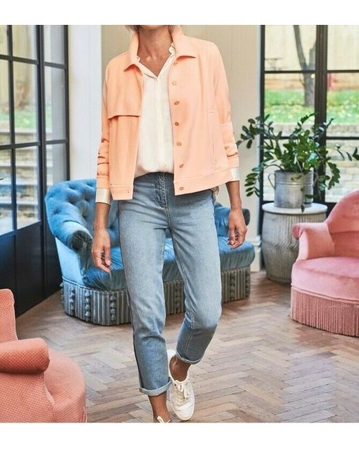 Size UK16. PURE: Peach Blush Collared Twill Jacket. Designed from soft and comfortable twill fabric, this lightweight jacket from Pure Collection is an elegant cover-up for any occasion.