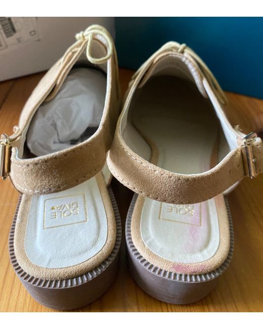 Suede effect fabric sling back style brogues from Sole Diva, size 7 EEE. There is a mark on the inner footbed of the right foot.