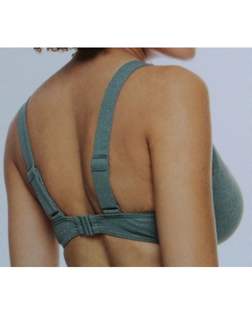 Green Laurel Wreath Shimmer Time Underwired D Cup Bikini Top Medium New