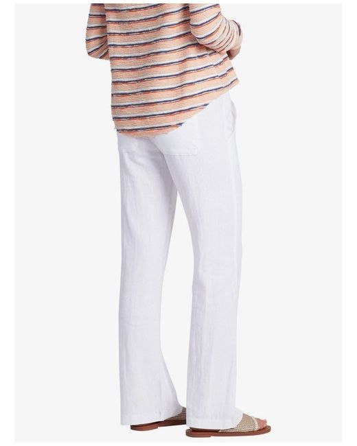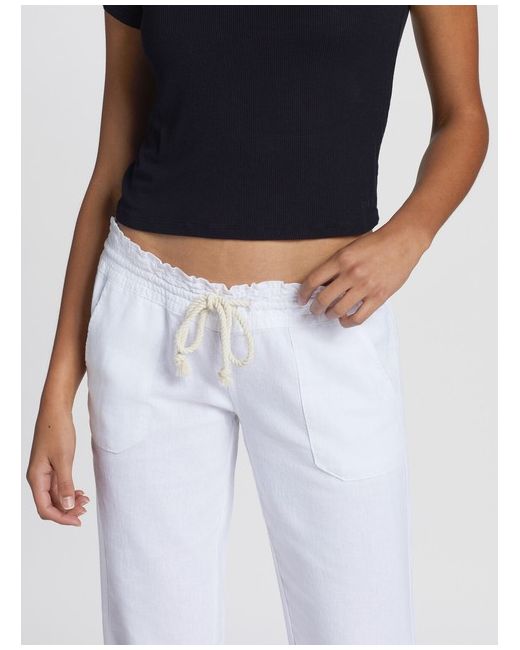 Roxy Oceanside Flared Trousers. With a jute rope belt and a flared leg, the Oceanside pants are the easiest way to perfect your warm-weather style. The comfy pull-on pants are crafted in blended flax linen with an elastic waistband, front and back pockets, and a small, embroidered logo.