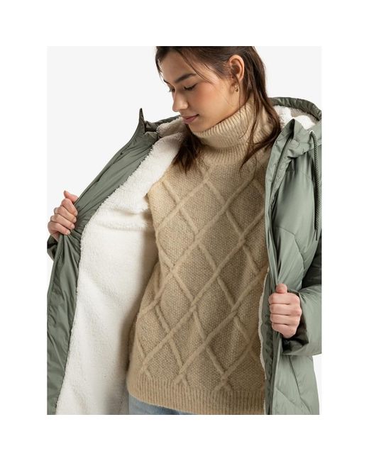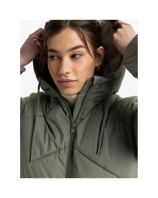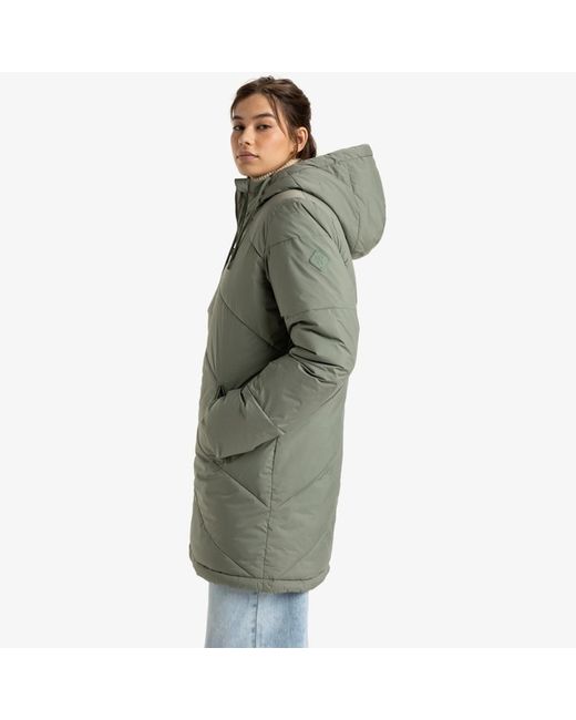 Durable Water Repellent [DWR] fabric treatment to keep you dry and protected from the elements, Long line, chunky padding fit, Fully lined and padded hood, Side slash pockets with snaps, 100% Polyester.