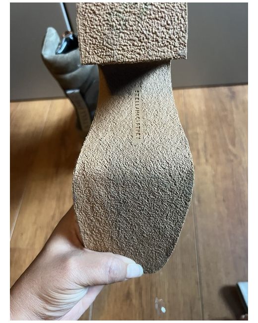 Elevate your shoe game with these chunky ancle boots from Stella McCartney. Designed with a square toe and a high wedge heel, these boots are perfect for any fashion-forward woman. The multicoloured suede and leather upper material is accented with lace details, making these boots both stylish and unique. The hook and loop closure ensures a secure fit, while the rubber outsole provides durability and traction. These boots are lined with leather and have a leather insole for added comfort. Perfect for any occasion, these Stella McCartney boots are a must-have for any fashion-savvy woman. Brand-new and authentic if you have any questions, don’t hesitate to ask