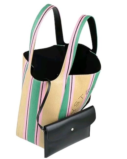 With its vibrant colour and sleek design, it is the perfect accessory to complete any outfit. Material: EXTERIOR: 50% POLYESTER 29% NYLON 19% COTTON 2% ACRYLIC LINING: 50% NYLON 50% POLYURETHANE. Color: STRIPPED.