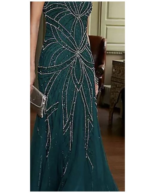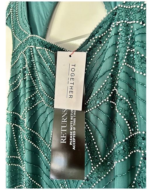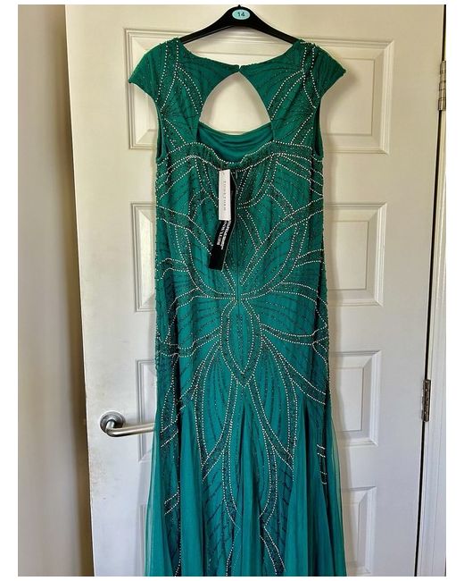 Beautiful dress on bought for cruise for celebration night. Bought for £150 still available online at this price. Will accept £120 as eBay will take their cut too Forest Green Beaded Maxi Dress. Adorned with intricate beadwork and draped in a rich green hue, this dress exudes timeless elegance, making it the perfect choice for a captivating evening. Short sleeves Square neck Polyester Length approx. 137 cm (54 ins)