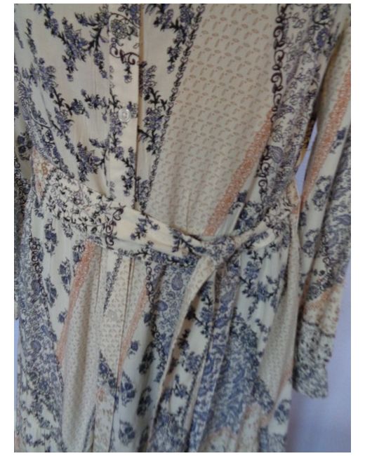 Women's Beige Shirt Dress 18 Blue Patchwork Pattern Long Sleeve NWOT
