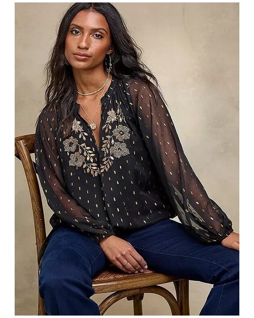 Our Black/Gold Jacquard Blouse features intricate embroidery detail on the front and a stylish bubble hem. This elegant piece is perfect for adding a touch of sophistication to any outfit. Machine washable.