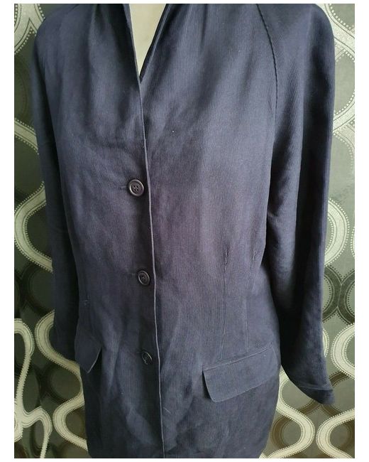 Fine rib cord like fabric. Smart navy unlined jacket. Colour Navy. 3 navy button fastening. Pleated panels at the back of jacket with mock belt and 2 silver buckles.
