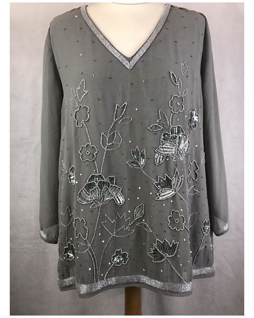 Together Grey Sequin Beaded V-Neck Split Sleeve Occasion Top UK14 NWT. Condition is "New with tags". Dispatched with Royal Mail 2nd Class Signed For. Outer fabric 100% Polyester. Lining 100% Polyester. Sequin, beaded floral design. Slit 3/4 sleeves. V-neck. New with tags. Top is modelled on a U.K. size 10-12 mannequin. Length of top 27”. Shoulder to shoulder 15”. Underarm to underarm 20.5”. Bust 36”. Sleeves 22”. Please take a look at our other items. Thanks for looking.