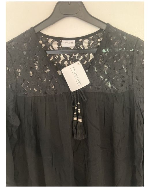 Black Metallic Lace Trim Tunic Blouse UK 10 NWT RRP 45
