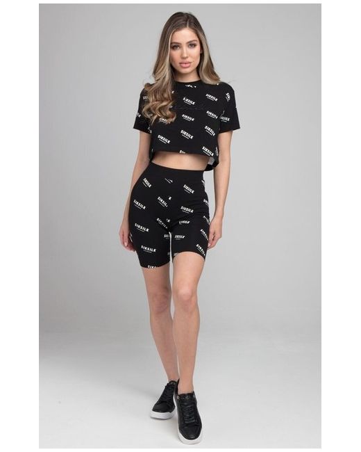 SikSilk Repeat Cycle Shorts. All over SikSilk logo print. Machine wash. Body con fit.