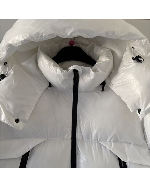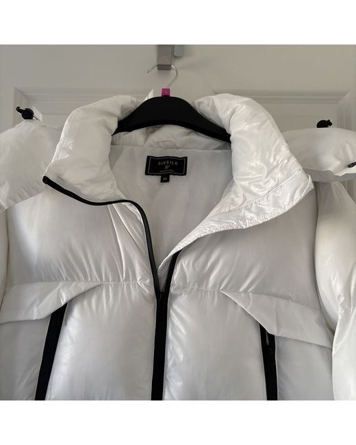 Long white coat by siksilk size medium, unisex, very warm, detachable hood, new without tags.