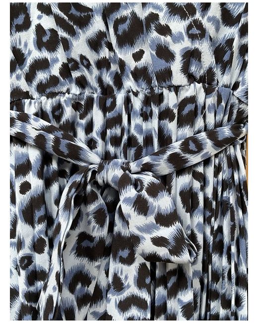 Women's Blue Girl Mind Pleated Leopard Print Elasticated Dress Tie Waist