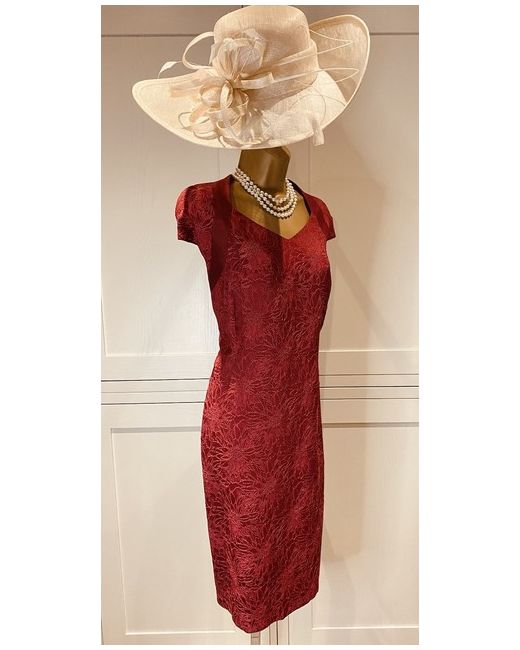 Jaques Vert Special Occasion Ruby Red Embroidered Shift Dress. A beautiful Classic dress from Jaques Vert. Side zip fastening with kick vent. Polyester satin lining. Structured fabric with no stretch.