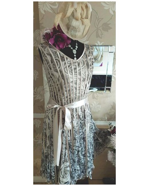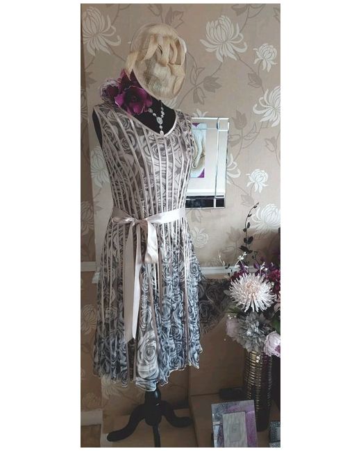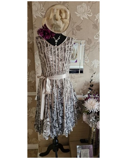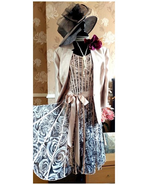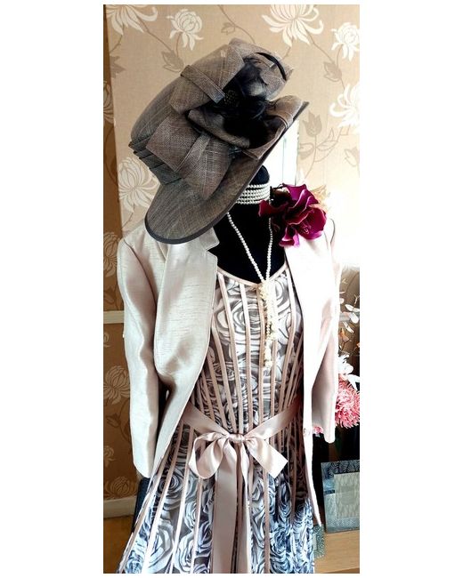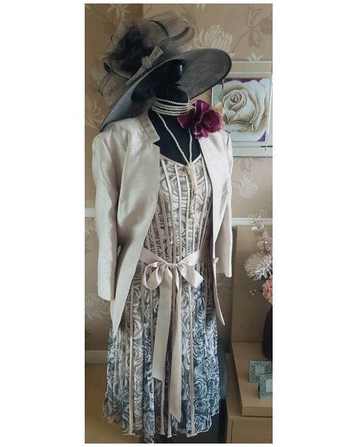 The one on the manniquin head. Grey pewter and dark beige colour. Matches dress perfectly. No box included. Jacket has a raw silk look shantung style fabric. Satin Lined. Small shoulder pads.