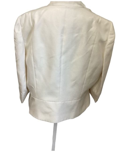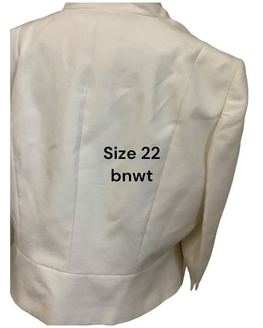 Jacque Vert Occasion ivory short Jacket Size 22 bnwt Length 24 1/2” Curved design Pit 23” 3/4 sleeves length 18” Vent to cuff Lined Fmio with plus bbus425