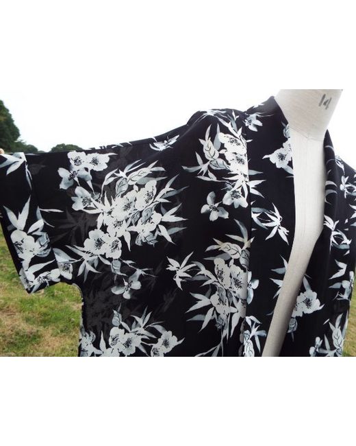 JACQUES VERT. Lightweight Black Floral Hang Loose Jacket Cover Up Kimono. This lightweight oversized jacket hangs loose with no fastening, has short turn back hem sleeves and 7” side seam splits. It has an “exclusive print” floral design.
