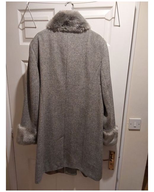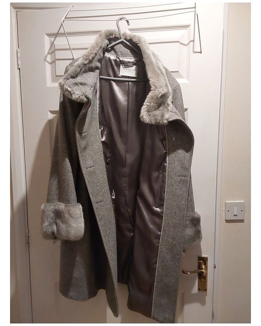 Elevate your winter wardrobe with this stunning grey wool blend coat from Jaques Vert. This mid-length overcoat features a collared neckline, lined interior, and multiple pockets for added convenience. The coat is crafted from high-quality wool, making it both stylish and warm during the colder seasons. Perfect for any occasion, this coat is a must-have for any fashion-forward woman. The size 18 regular fit is ideal for women of all shapes and sizes. Add a touch of sophistication to your winter wardrobe with this Jaques Vert coat.