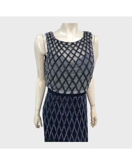 Colour - Navy. Features - This dress has a diamond pattern and there is a slit in the skirt. Care instructions - Dry clean. Grade/ condition - C - New other - Minor defects. New other - minor defects.