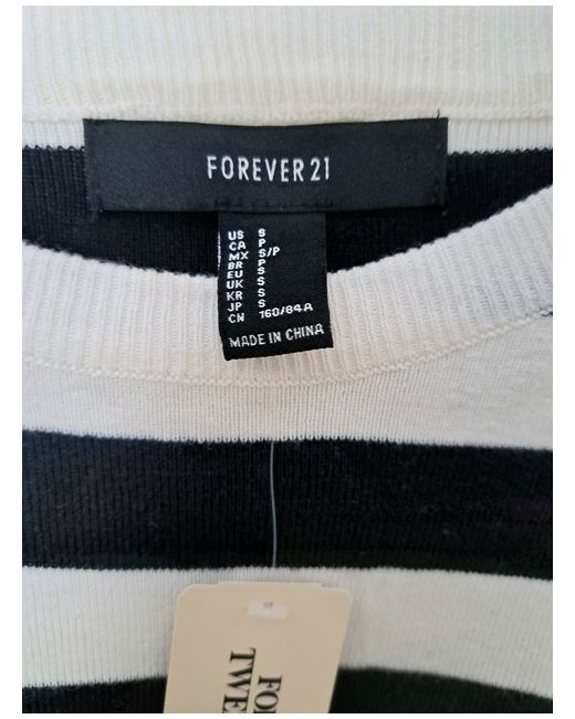 This stylish Forever 21 striped jumper is an excellent addition to any fashion-conscious woman's wardrobe. Crafted from high-quality materials, this jumper is both comfortable and durable, making it ideal for everyday wear. The jumper features 3/4 sleeves, and a size S, which is perfect for regular-sized women. The white and black striped pattern gives it a chic and trendy look that is sure to turn heads. Whether you're dressing up or down, this jumper is versatile enough to suit any occasion. It is perfect for women who are looking for a comfortable yet stylish piece of clothing.