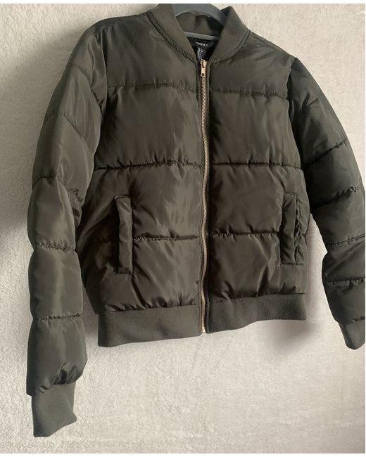 Forever 21 Khaki Puffer Bomber Jacket - Warm stylish jacket - Very good condition: brand new condition, however, there was an accidental tear as photographed. Completely undetectable when item is worn. - Size: Small