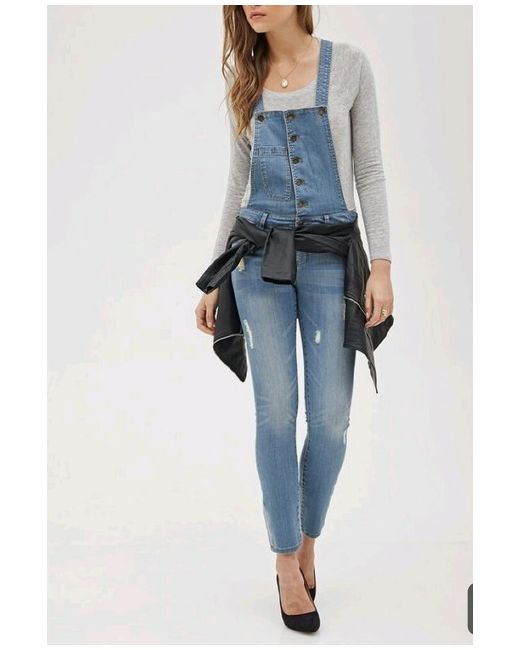 Forever 21 Life In Progress Distressed Denim Overall Dungaree W25 New but tags removed, never been worn