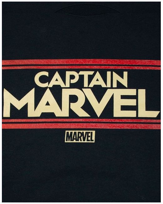 Be the hero and win the galactic war in this Marvel Captain Marvel Letters Womens Black Sweatshirt. This jumper ticks all the boxes in style and comfort and is the perfect addition to any Marvel fans wardrobe. The print across the front has 'Captain Marvel' bold in gold with the classic red lines above and below. This is finished off with the marvel logo. This bold print sits perfectly against the classic black sweatshirt and is a womans standard fitting. This cool jumper offers a crew neck and long sleeve style. To get the most out of this product, please follow all care label instructions carefully. As all of our items, this sweatshirt 100% official and is fully licensed throughout.
